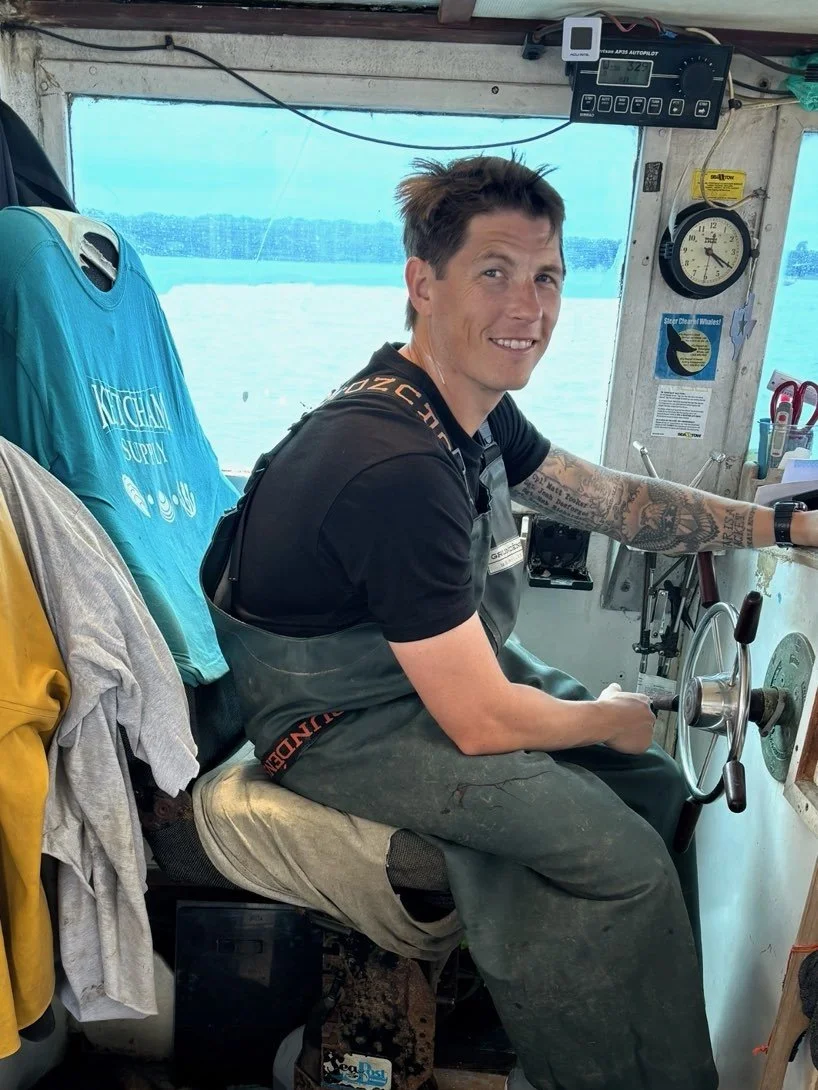 Introducing Thomas, a.k.a. 'TM': He's not just the latest member of Whilden Fisheries, he's a great team player who is rapidly fitting in! A highly capable, versatile, and forward-thinking deckhand, TM seamlessly takes the position on both the oyster and lobster boats on any given day, taking his job seriously."